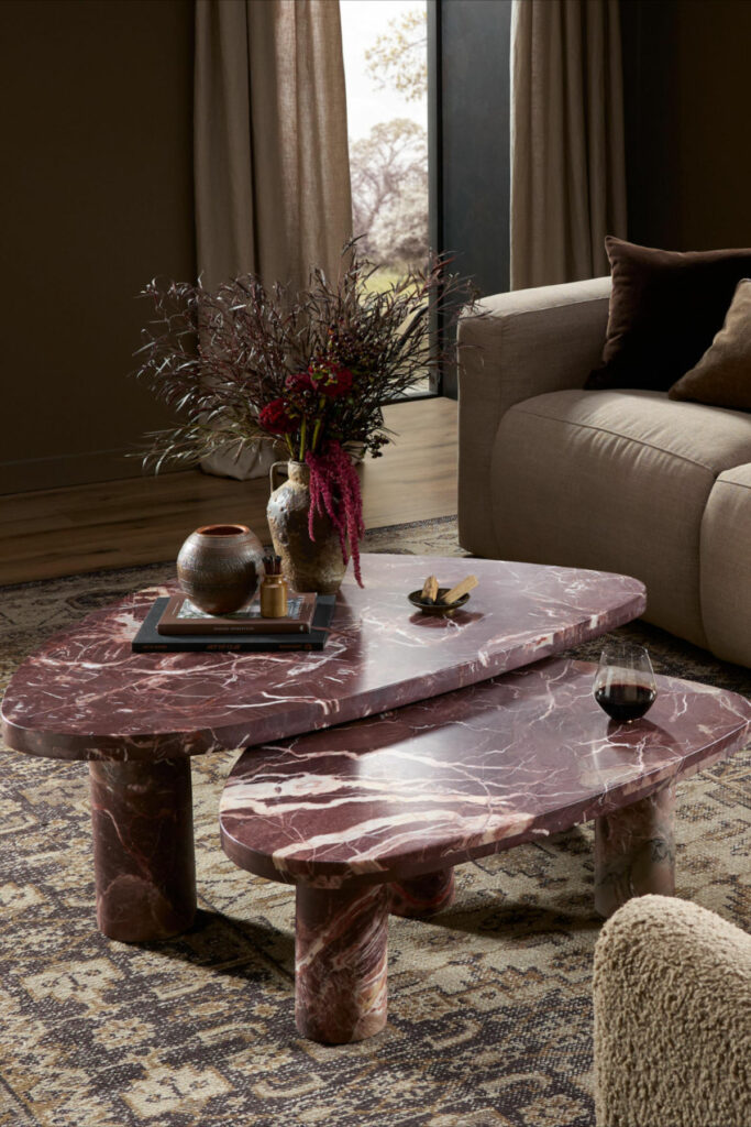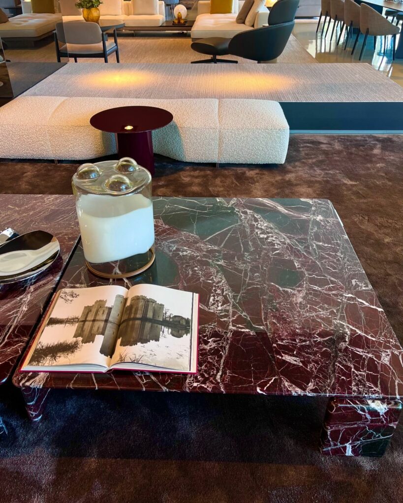 Enfin, le Lepanto Rosso magnifie les pièces de mobilier : tables basses, plateaux, consoles, ou vasques sculpturales. À cette échelle, il n’est plus seulement un matériau : il devient un objet d’art.