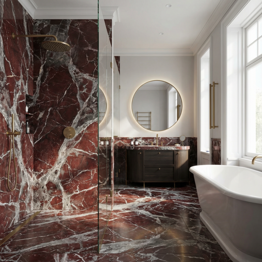 Marbre Rosso Lepanto en décoration intérieure : usages, idées et inspirations haut de gamme
