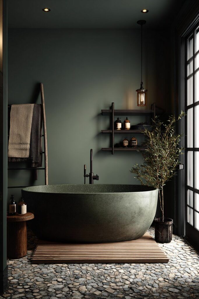 Si vous voulez un résultat réellement haut de gamme, privilégiez — lorsque c’est possible — une baignoire îlot (freestanding), posée au centre ou légèrement décollée d’un mur.